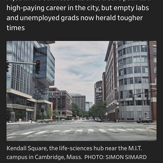 Before we all closed our laptops for the winter holiday break, the Wall Street Journal published an article about how the Boston biotech sector is struggling. The article noted that hiring is down, attributing it to research funding cuts at the federal level, and it also highlighted a PhD student, raised in Hong Kong, who is considering taking a job in China because of the tough market here.