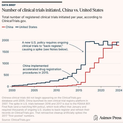 China’s delivery/financing is often locally governed and administratively fragmented, but trial recruitment can still be faster because patients are concentrated in huge tertiary hospitals, physicians can recruit from very high-throughput clinics, and regulatory/contracting friction is just generally lower anywhere you are. I think that “centralization” isn’t the thing here; throughput + friction is.