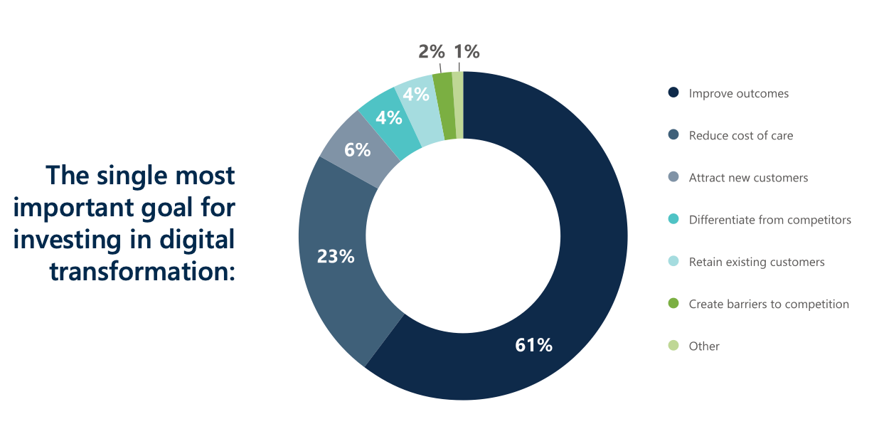 First, hospital-at-home programs seem to align more logically with health systems’ goals than telehealth does. As the Chartis Group found, health systems are most interested in “digital transformation” because of the potential to improve outcomes. It’s quite unclear how hospitals expect telehealth to carry that burden, but hospital-at-home has the potential to make a real difference in outcomes. If improving outcomes are truly a goal for health system leadership, investing in hospital-at-home seems much more impactful than trying to integrate telehealth.